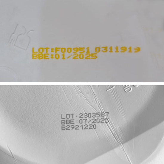 Look for a 5-8 digit LOT number as well as the BBE month. Typically on the reverse of a bag or bottom of a tub. Location may vary depending on product.